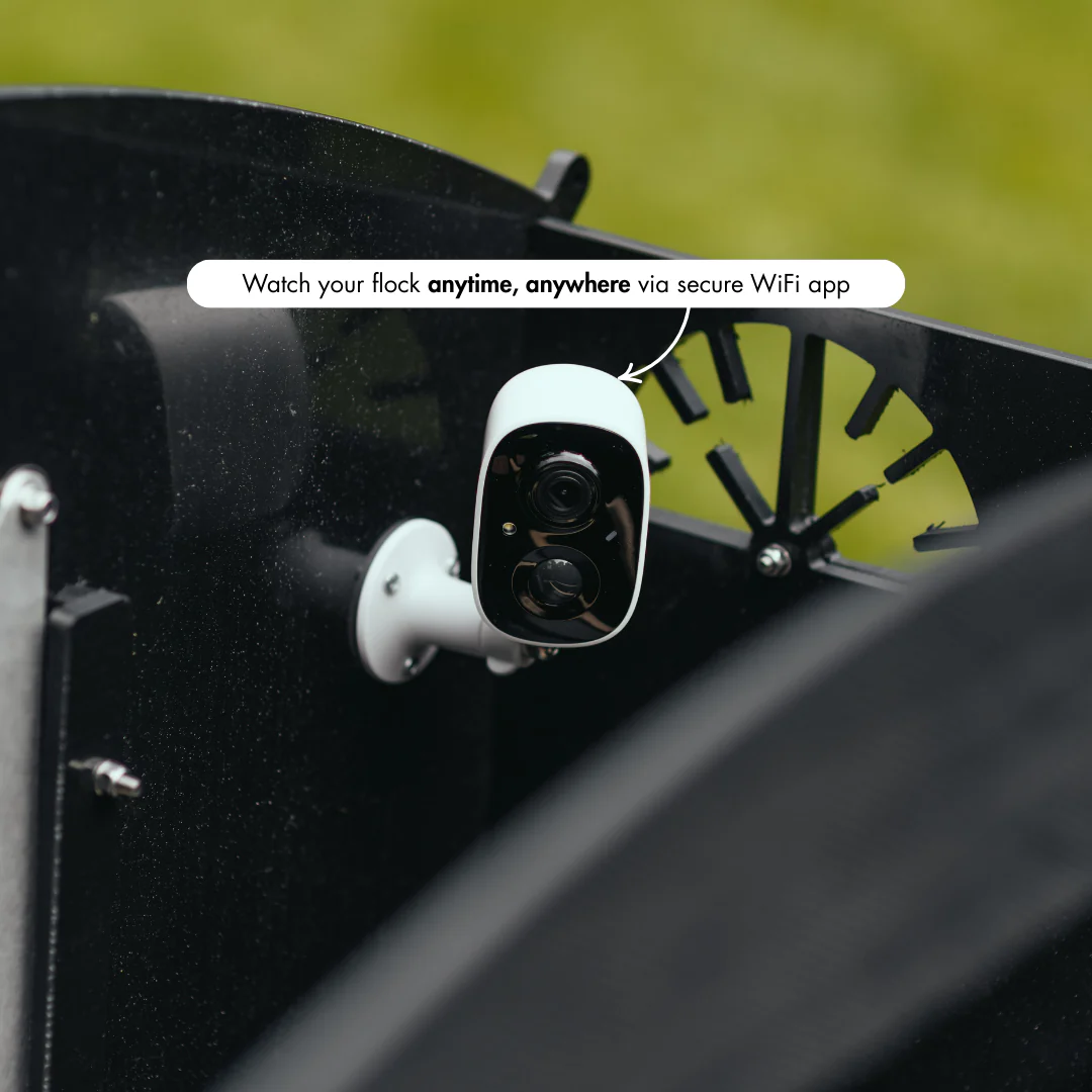 Met onze Nestera wifi camera kunt u uw huisdieren altijd en overal in de gaten houden! Mis je ze terwijl je aan het werk bent of moet je ze een paar dagen achterlaten? Geen probleem. U kunt snel controleren of uw kippen veilig en gelukkig zijn, rechtstreeks vanaf uw smartphone of tablet via een beveiligde applicatie.